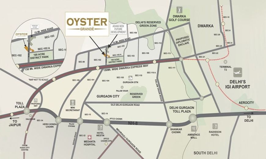 Strategically situated along the Dwarka Expressway, Adani M2K Oyster Grande offers excellent connectivity and proximity to key destinations: