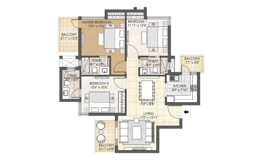 | Apartments | 3 BHK | 1,689 to 2,598/sqft | On Request | Floor Plan |