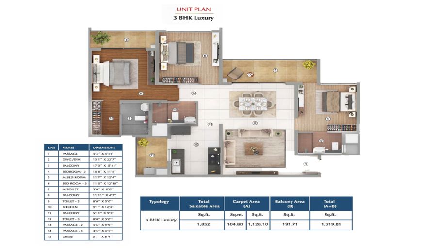 | Apartments | 3 BHK – Luxury | 1852/sqft | 1.27 Crs* | Floor Plan |