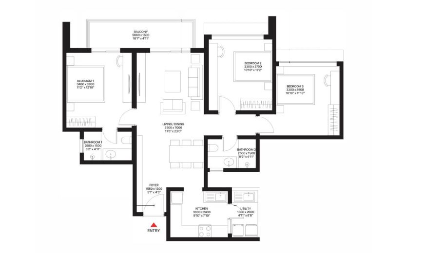 | Apartments | 3 BHK | 1570/sqft | 2.28 Crs* | Floor Plan |