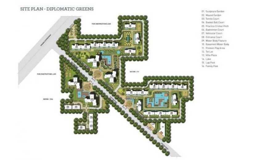 Green Spaces: Approximately 60% of the project area is dedicated to landscaped greens and open spaces, providing a serene environment.